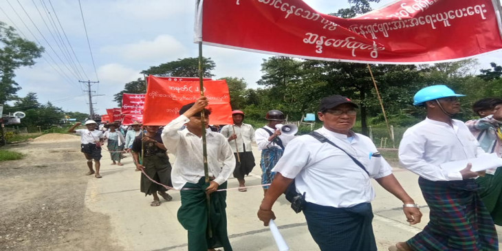ေလးမ်က္ႏွာၿမိဳ႕နယ္လႊတ္ေတာ္ကိုယ္စားလွယ္ႏွင့္ ေျမစာရင္းဌာနကို ေတာင္သူမ်ား ဆႏၵျပ ဒီဗြီဘီ ဧရာဝတီတိုင္းေဒသႀကီးလႊတ္ေတာ္ ေလးမ်က္ႏွာၿမိဳ႕နယ္ အမွတ္ (၂) လႊတ္ေတာ္ ကိုယ္စားလွယ္နဲ႔ ၿမိဳ႕နယ္ေျမစာရင္းဦးစီးဌာနကို ေတာင္သူေတြ တရားစြဲဆိုခံေနရတာနဲ႔ ပတ္သက္ၿပီး စက္တင္ဘာလ ၂၇ ရက္ေန႔က ေလးမ်က္ႏွာၿမိဳ႕မွာ ေတာင္သူ ၁၀၀ နီးပါးက ဆႏၵထုတ္ေဖာ္ခဲ့ၾကပါတယ္။ ဝက္ကုန္းေက်း႐ြာအုပ္စုက ၁၀ တန္းေက်ာင္းသားဦးအပါအဝင္ ေတာင္သူ ၃၉ ဦးကို အျငင္းပြားေျမေနရာမွာ ဝင္ေရာက္ထြန္ယက္လုပ္ကိုင္တယ္ဆိုၿပီး မ်ိဳးေက်ာ္လင္းကုမၸဏီက က်ဴးေက်ာ္မႈ၊ အက်ိဳးဖ်က္ဆီးမႈ၊ မီးရႈိ႕မႈေတြနဲ႔ တရားစြဲဆိုခဲ့တဲ့အေပၚ ေလးမ်က္ႏွာၿမိဳ႕နယ္ တိုင္းေဒသႀကီးလႊတ္ေတာ္ကိုယ္စားလွယ္နဲ႔ ၿမိဳ႕နယ္ေျမစာရင္းဦးစီးဌာနက ဘက္လိုက္ပါဝင္ပ ပတ္သက္မႈေတြရွိခဲ့တယ္ဆိုၿပီးဆႏၵေဖာ္ထုတ္ခဲ့တာ ျဖစ္ပါတယ္။ တရားစြဲခံရတဲ့ ၁၀ တန္းေက်ာင္းသား ေမာင္ကိုကိုႏိုင္က "က်ေနာ္တို႔ေျမေတြကို အစိုးရကျပန္ေပးတဲ့စာေတြ ထြက္ထားတာရွိလို႔ ဝင္ေရာက္လုပ္ကိုင္တာကို တရားစြဲခံရတာပါ။ အခုေတာ့ ေက်ာင္းတက္ရက္လည္း ႐ုံးခ်ိန္းရွိရင္ေက်ာင္းပ်က္ၿပီး တရား႐ုံးလာရပါတယ္။ မၾကာခင္စာေမးပြဲေတြလည္း ေျဖရတဲ့အခ်ိန္ဆိုရင္ ႐ုံးခ်ိန္းေတြဆိုရင္သားမွာ အရမ္းဒုကၡေရာက္မွာပါ သားကေတာ့ေအးေဆးေက်ာင္းပဲ တက္ခ်င္ပါတယ္"လို႔ ေျပာပါတယ္။ ဝက္ကုန္းေက်း႐ြာအုပ္စု အပါအဝင္အနီးအနားေက်း႐ြာေတြနားက ေထာင္နဲ႔ခ်ီတဲ့ ေျမေတြေပၚမွာ မ်ိဳးေက်ာ္လင္းကုမၸဏီက ကြၽန္းပင္နဲ႔ ရာဘာပင္ေတြ စီမံကိန္းနဲ႔ စိုက္ပ်ိဳးေနတာပါ။ ဒီလိုစိုက္ပ်ိဳးရာမွာ ေဒသခံေတြရဲ႕ ေျမေတြပါဝင္တယ္ဆိုတဲ့ အျငင္းပြားမႈ ျဖစ္ပြားေနကာ ကုမၸဏီနဲ႔ေဒသခံေတြအၾကား ႏွစ္ဖက္တရားစြဲဆိုမႈေတြ မၾကာခဏျဖစ္ေပၚေနတာလို႔ ေလးမ်က္ႏွာၿမိဳ႕နယ္ အမွတ္ ၂ တိုင္း ေဒသႀကီး လႊတ္ေတာ္ကိုယ္စားလွယ္ ဦးစိုးသန္းက ေျပာပါတယ္။ ဆႏၵေဖာ္ထုတ္သူေတြက ေျမယာလုပ္ပိုင္ခြင့္တရားဝင္ရရွိေရး၊ ဥပေဒမဲ့ေျမယာရရွိေနသည့္ ကုမၸဏီလုပ္ငန္းရွင္ေတြအလိုမရွိ၊ ေဒသခံေတာင္သူေတြကို တရားစြဲဆိုမႈ ခ်က္ခ်င္းရပ္ စတဲ့ ပိုစတာေတြကိုင္ေဆာင္ေႂကြးေၾကာ္ၿပီး ေလးမ်က္ႏွာၿမိဳ႕အႏွံ လွည့္လည္ဆႏၵေဖာ္ထုတ္ခဲ့ၾကပါတယ္။ သတင္း- ျမမင္းဦး(ပုသိမ္)