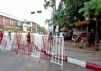 ရဲတွေက ရေအမြောက်တွေ မျက်ရည်ယိုဓာတ်ငွေ့တွေကို မသုံးခင် ဗြိတိန်အုပ်ချုပ်ချိန် အစဉ်အလာအတိုင်း လက်တုံ့ပြန်မယ်လို့ သတိပေးထားတဲ့ ပိုစတာတွေကို လွှင့်ထူခဲ့ပါတယ်။