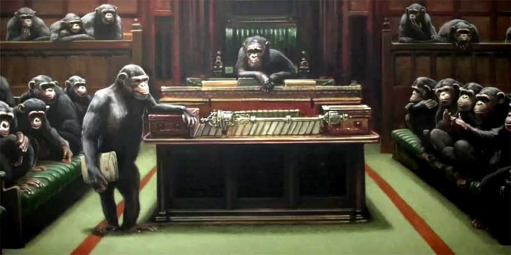 ဗြိတိန်ပါလီမန်အတွင်း ချင်ပန်ဇီတွေ ဝင်ထိုင်နေပုံကို သရုပ်ဖော်ထားတဲ့ ဘန်စကီ ပန်းချီကားဟာ အောက်တိုဘာ ၃ ရက်က လေလံပွဲမှာ အမေရိကန် ဒေါ်လာ ၁၂ သန်းကျော်နဲ့ စံချိန်တင် ရောင်းချခဲ့ရပါတယ်။