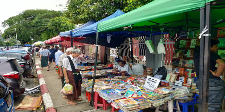 ရန်ကုန်မြို့၊ သိမ်ဖြူလမ်းမပေါ် ဝန်ကြီးများရုံးရှေ့မှာ ဖွင့်လှစ်လေ့ရှိတဲ့ ရန်ကုန် စာအုပ်လမ်းကို ဒီနေ့ အောက်တိုဘာ ၅ ရက်မှာ စတင်ဖွင့်လှစ်လိုက်ပါတယ်။