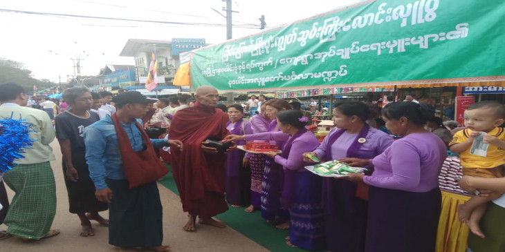ရေးမြို့နယ်တွင် သံဃာနှင့် သီလရှင်အပါး ၁၅၀၀ ကျော်ကို ဆွမ်းဆန်စိမ်း လောင်းလှူ (ဓာတ်ပုံ)