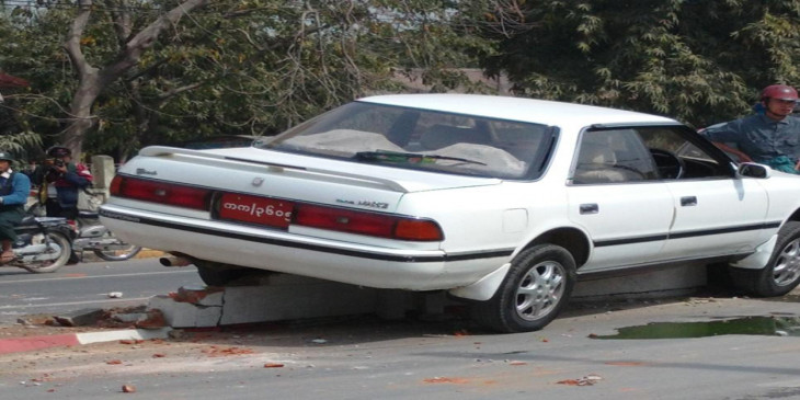 မနၱေလးျမို့ သိပၸံလမ္းနဲ့ ကညန ရံုးအေ႐ွ့ဘက္မွာ မြန္းလြဲ ၁၁ နာရီ ၅၀ မိနစ္ အခ်ိန္က အငွားယာဥ္ MARK II ၁ စီးဟာ လမ္းလယ္႐ွိ ပန္းခံုကုိ ၀င္ေရာက္တိုက္မိမႈ ျဖစ္ပြားခဲ့ပါတယ္။ ၀င္တိုက္မိမႈေၾကာင့္ ကားမွာ အင္ဂ်င္၀ိုင္မ်ား ယိုက်ခဲ့ျပီး ထိခိုက္ဒဏ္ရာ ရ႐ွိသူ မ႐ွိဘူးလို့