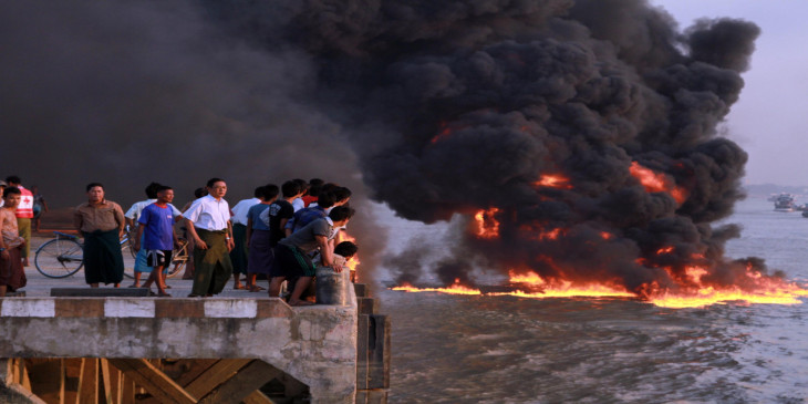 ေလာင္စာဆီတင္သေဘၤာ ေကာင္းျမတ္ေက်ာ္ ေရယာဥ္နဲ့ ေအာင္သုခ ေရယာဥ္တို့က စတင္ေလာင္ကၽြမ္းခဲ့တာျဖစ္ျပီး ေလာင္စာဆီဆိပ္ကမ္းကေန သစ္ဆိပ္ကမ္းဘက္ကိုေမွ်ာျပီး သစ္ဆိပ္ကမ္းကိုပါ မီးအနည္းငယ္ေလာင္ကၽြမ္းခဲ့တာပါ။