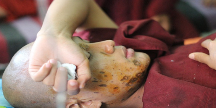 ဒဏ္ရာရသံဃာေတြရဲ့ မီးေလာင္ဒဏ္ရာေတြ ျပင္းထန္မႈအေပၚ အျငင္းပြားမႈေတြ ျဖစ္ခဲ့ျပီးေနာက္ အေမရိကန္နိုင္ငံက ပါေမာကၡ ေရာ္ဂါေနာ္မန္ကေန လက္ပန္းေတာင္းသပိတ္ ျဖိုခြင္းမႈအခင္းျဖစ္တဲ့ေနရာကို ကြင္းဆင္းစုံစမ္းျပီး ေတြ့႐ွိခ်က္ေတြကို ေ႐ွ့ေနမ်ားကြန္ရက္နဲ့ပူးေပါင္းျပီး သတင္းစာ႐ွင္းလင္းပြဲျပုလုပ္ခဲ့တာပါ။