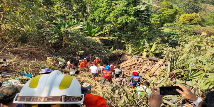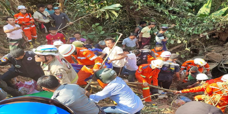 ယာဉ်နှစ်စီး တိုက်ခဲ့ပြီးနောက် အလင်းရောင်မိုး ခရီးသည်တင်ကားဟာ ချောက်ထဲပြုတ်ကျခဲ့ တာပါ။ ချောက်ထဲပြုတ်ကျတဲ့ အလင်းရောင်မိုး ခရီးသည်တင်ကားက ဒဏ်ရာရရှိသူတွေကို ရဲတပ်ဖွဲ့တွေ၊ မီးသတ်တပ်ဖွဲ့ဝင်တွေနဲ့ ကူညီကယ်ဆယ်ရေးအဖွဲ့တွေက ကယ်ထုတ်နေကြောင်း သိရပါတယ်။
