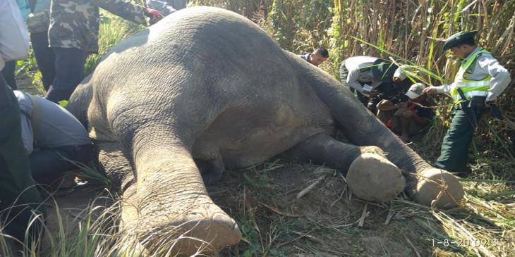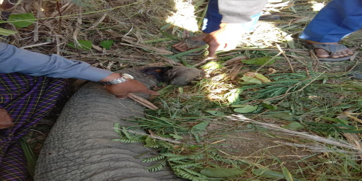 "မနက် ၃ နာရီအချိန်လောက်က သေဆုံးတယ်လို့ ခန့်မှန်းထားပြီး အခြား ဒဏ်ရာ တစုံတရာ မရှိဘူး။ နှာမောင်းအဖျားနဲ့ နှစ်လက်မအကွာလောက်မှာ ဒဏ်ရာတွေ့တယ်။ ဝါယာရှော့ဖြစ်ပြီး ဓာတ်လိုက်သေဆုံးတာပါ။ ကျနော်တို့ကို အကြောင်းကြားတော့ မနက် ၇ နာရီလောက်ဖြစ်ပြီး ကျနော်တို့ ရောက်သွားတော့ ဆင်သေဆုံးတဲ့နေရာမှာ လျှပ်စစ်ခြံစည်းရိုးတော့ မရှိတော့ဘူး။"
