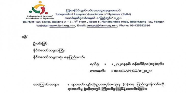 မြန်မာနိုင်ငံရဲတပ်ဖွဲ့ ရဲမှူးချုပ်အပါအဝင် အရာရှိကြီးတချို့ကို တရားစွဲဖို့ လွတ်လပ်သော ရှေ့နေများအသင်းက သမ္မတဆီ ခွင့်ပြုချက် တောင်းခံလိုက်ပါတယ်။