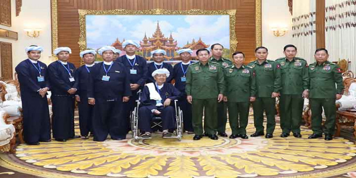 တပ်မတော်ကာကွယ်ရေးဦးစီးချုပ် ဗိုလ်ချုပ်မှူးကြီး မင်းအောင်လှိုင်ဟာ ပအိုဝ်းငြိမ်းချမ်းရေး အဖွဲ့ (PNO) အသွင် ပြောင်းပြည်သူ့စစ်(ဌာနေ)အဖွဲ့ ဥက္ကဋ္ဌ ဦးအောင်ခမ်းထီနဲ့ အဖွဲ့ကို ဒီကနေ့ နေပြည်တော်မှာ တွေ့ဆုံပြီး ဒေသဖွံ့ဖြိုးရေး စိုက်ပျိုးရေးကိစ္စတွေ တွေ့ဆုံ ဆွေးနွေးပါတယ်။