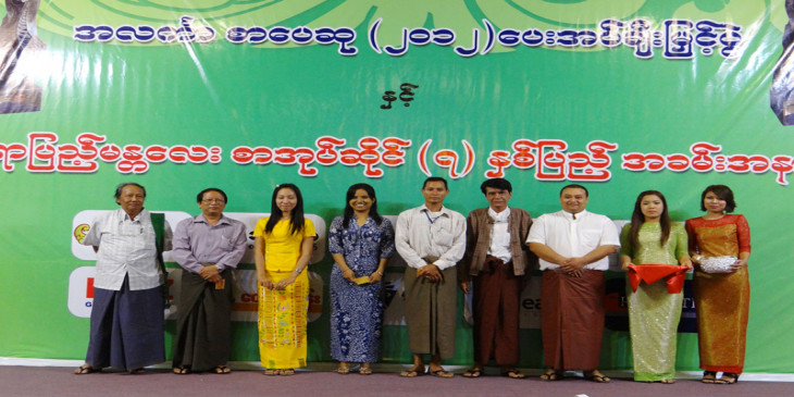 အလကၤာစာေပဆု ၂၀၁၂ ေပးအပ္ခ်ီးျမွင့္ပြဲနဲ့ ရာျပည့္မနၱေလးစာအုပ္ဆိုင္ ၇ နွစ္ျပည့္အခမ္းအနားကို ဒီေန့ မြန္းလြဲ ၂ နာရီက မနၱေလး-ျပင္ဦးလြင္လမ္းက ဟုိတယ္ေ႐ြွႊျပည္သာ မဂၤလာခန္းမမွာ က်င္းပပါတယ္။
