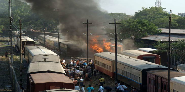 ဧျပီ ၂၁ ရက္ေန့ ညေန ၄ နာရီေက်ာ္က မနၱေလးမီးရထားဘူတာအတြင္း မီးေလာင္မႈ ျဖစ္ပြားခဲ့ပါတယ္။ အထက္တန္းအိပ္စင္ ရထားတြဲအမွတ္ BNUEZ 12665 မီးေလာင္တာျဖစ္ပါတယ္။ ရပ္နားထားတဲ့တြဲေတြၾကားမွာ ေလာင္တာျဖစ္ျပီး အခ်ိန္မီတြဲေတြ ျဖုတ္ေ႐ြွႊ့နုိင္တာေၾကာင့္ တြဲတတြဲသာ မီးေလာင္မႈ ျဖစ္ခဲ့ပါတယ္။