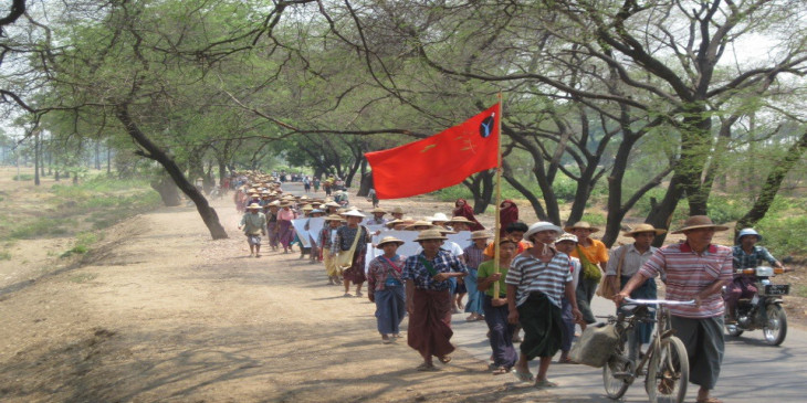 [/caption]ဆနၵျပေခါင္းေဆာင္တဦးက “က်ေနာ္တုိ့က လက္ပန္းေတာင္းေတာင္ စီမံကိန္းလုံး၀ဖ်က္သိမ္းေရး၊ ကိုယ့္လယ္မွာ ကိုယ္ျပန္စိုက္ပ်ဳိးေရး၊ မေန့က ဖမ္းဆီးထားတဲ့ ကိုေအာင္စိုး၊ ကိုစိုးသူနဲ့ ကိုဆန္းတို့ကို ျပန္လြွႊတ္ေပးေရးနဲ့ ႐ြာသားေတြကို အၾကမ္းဖက္သူေတြကို ေဖာ္ထုတ္ေပးေရး၊ ပုဒ္မ ၁၄၄ ႐ုပ္သိမ္းေပးေရးတုိ့ကုိ ေတာင္းဆိုတာပါ၊ ရဲက အင္အားသုံး တားျမစ္တာပါ။” လို့ ဆုိပါတယ္။