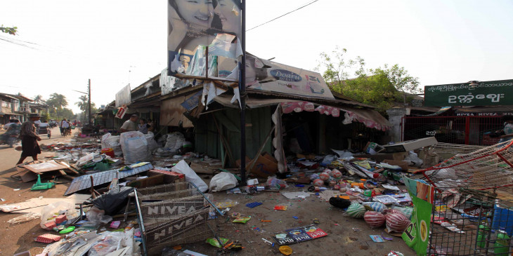 ဥကၠံျမို့နယ္မွာ ဧျပီ ၃၀ ရက္ေန့ မနက္ပုိင္းက ဘုရားၾကီးေဈးထဲမွာ ဆြမ္းခံၾကြလာတဲ့ အသက္ ၁၁ နွစ္အ႐ြယ္ ကိုရင္တပါးနဲ့ အမ်ဳိးသမီးတဦး တိုက္မိလို့ သပိတ္ကြဲရာကေန ဘာသာေရးအေဆာက္အဦ ၂ ခုနဲ့ ဆိုင္ခန္းတခ်ို့ ဖ်က္ဆီးမႈေတြ ျဖစ္ခဲ့ျပီး ရဲက ေသနတ္ပစ္ေဖာက္ထိန္းသိမ္းခဲ့ရပါတယ္။ ဒီေနာက္ ညဘက္ပုိင္းမွာ မီး႐ႈိ့ဖ်က္ဆီးမႈေတြ ဆက္လက္ျဖစ္ပြားခဲ့တာပါ။