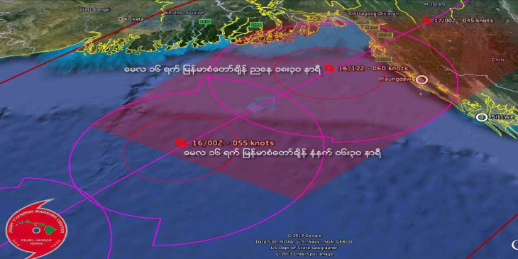 ေမ ၁၆ တြင္ မဟာစင္မုန္တုိင္း ရခုိင္ကမ္း႐ုိးတန္းေျမာက္ပုိင္းကုိ ၀င္နုိင္