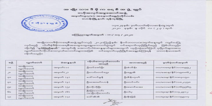၂၀၂၀ နိုဝင်ဘာလ ၈ ရက်နေ့ကျင်းပမယ့် အထွေထွေရွေးကောက်ပွဲမှာ အမျိုးသားဒီမိုကရေစီအဖွဲ့ချုပ်ကိုယ်စားပြုဝင်ရောက်ယှဉ်ပြိုင်မယ့် မွန်ပြည်နယ်က လွှတ်တော်ကိုယ်စားလှယ်လောင်းစာရင်းကို အန်အယ်လ်ဒီပါတီက ဒီကနေ့ ဇူလိုင် ၂၃ ရက်မှာ ထုတ်ပြန်ကြေညာလိုက်ပါတယ်။