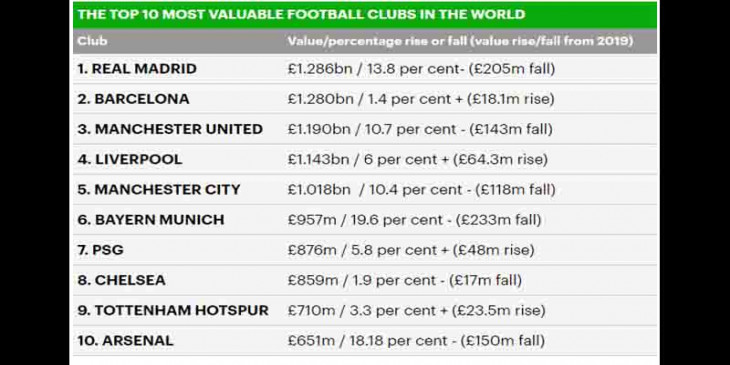 လီဗာပူးကပေါင် ၁ ဒသမ ၁၄၃ ဘီလီယံနဲ့စတုတ္ထ၊ မန်စီးတီးက ပေါင် ၁ ဒသမ ၀၁၈နဲ့ ပဉ္စမနေရာတွေမှာ အသီးသီးရပ်တည်ခဲ့ပါတယ်။