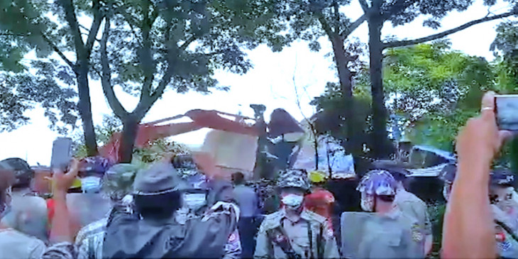 ပဲခူး GTI ကျောင်း စီမံကိန်းမြေအတွင်း ကျရောက်နေတယ်ဆိုပြီး သတိပေးစာ ပေးပို့ထားတဲ့ နေအိမ်တွေကို အာဏာပိုင်တွေက အင်အားသုံးဖယ်ရှားလိုက်ပါတယ်။