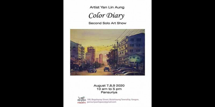 ပန်းချီရန်လင်းအောင်ရဲ့ Color Diary အမည်ရှိ ဒုတိအကြိမ် တကိုယ်တော် ပန်းချီပြပွဲကို ဗိုလ်တထောင်မြို့နယ်၊ ဘိုကလေးဈေးလမ်း အမှတ် ၁၀၀ ရှိ Pansuria အနုပညာ ပြခန်းမှာ ပြုလုပ်နေပါတယ်။