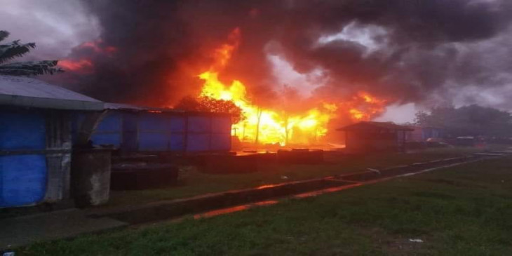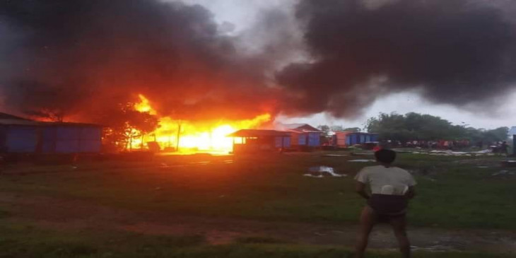 စခန်းအတွင်းရှိ လိုင်းခန်း နေအိမ်အဆောင်တခုရဲ့ မီးဖို မီးကြွင်းမီးကျန်ကတဆင့် အနီးရှိ ဝါးထရံကို မီးကူးစက်လောင်ကျွမ်းတာဖြစ်ပြီး မီးလောင်မှုကြောင့် သွပ်မိုး၊ ဝါးထရံကာ၊ ဝါးခင်း လူနေအိမ်အဆောင် ၇ လုံး မီးလောင်ဆုံးရှုံးခဲ့ကာ လူပေါင်း ၂၂၉ ဦး အိုးအိမ်မဲ့ ဖြစ်ခဲ့တယ်လို့ ဆိုပါတယ်။