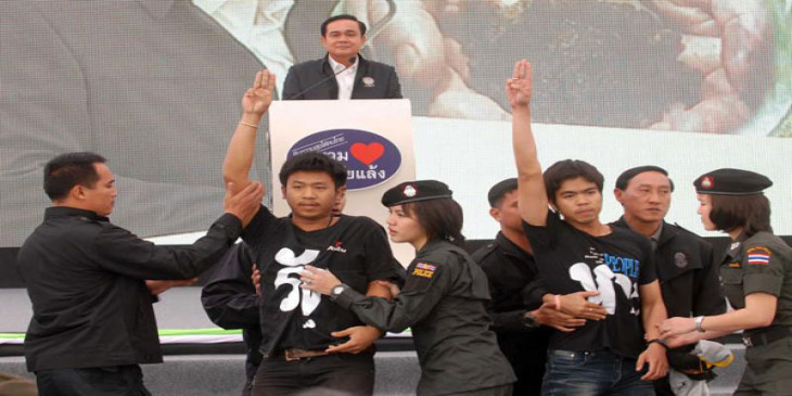 ထိုင္းႏုိင္ငံ ခြန္ကန္ တကၠသိုလ္မွာ ၀န္ႀကီးခ်ဳပ္ ပရာယြတ္ခ်န္အိုခ်ာ မိန္႔ခြန္းေျပာေနစဥ္ ဆႏၵျပတဲ့ ခြန္ကန္ တကၠသိုလ္ ေက်ာင္းသား ၅ ဦးကို ႏုိင္ငံေရး သမားေတြက ပိုက္ဆံေပးခဲ့တာလို႔ စစ္တပ္ အရာရွိက စြပ္စြဲလိုက္ပါတယ္။