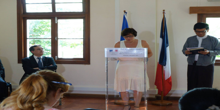 ျမန္မာႏိုင္ငံကို ေရာက္ရွိေနတဲ့ ဖြံ႔ၿဖိဳးတိုးတက္ေရးနဲ႔ ျပင္သစ္ဘာသာစကား ထြန္းကားျပန္႔ပြားေရးဝန္ႀကီး မဒမ္ အန္နီ ဂ်ီရာဒီ ဒီဇင္ဘာ ၄ ရက္ေန႔မွာ ေျပာဆုုိလုုိ္က္တာပါ။