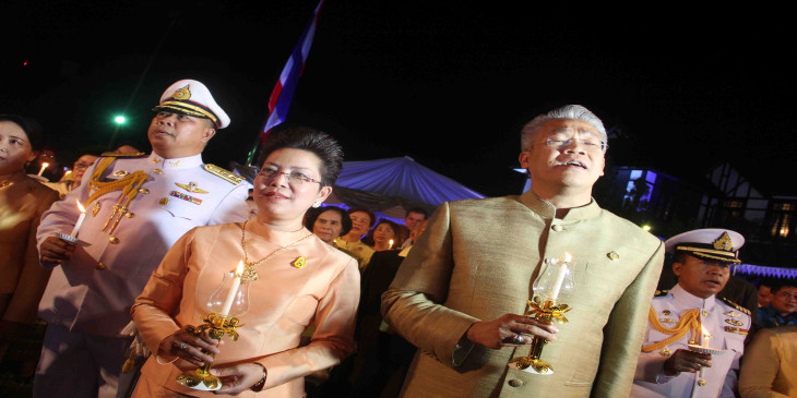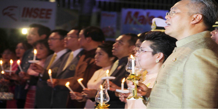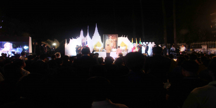 နာမက်န္းျဖစ္ၿပီး ေဆးရံုမွာ တက္ေရာက္ ေဆးကုသမႈ ခံယူေနရတဲ့ ထိုင္းဘုရင္ႀကီး ဘူမိေဘာ အဒူလ္ယာဒက္ရဲ႕ သက္ေတာ္ ၈၇ ႏွစ္ျပည့္ ေမြးေန႔ပြဲေတြကို ထုိင္းႏိုင္ငံတ၀န္း မေန႔က က်င္းပခဲ့သလုိ ရန္ကုန္ၿမိဳ႕ ထုိင္းသံ႐ုံးမွာလည္း ဒီဇင္ဘာ ၅ ရက္ေန႔ ည ၆ နာရီက က်င္းပျပဳလုပ္ခဲ့ပါတယ္။