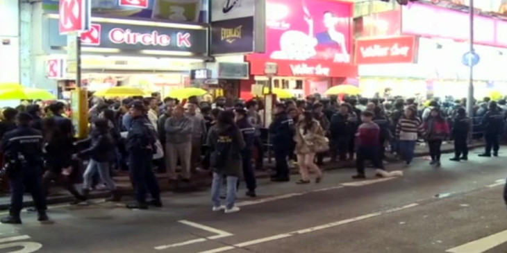 ေဟာင္ေကာင္ အထူးစီမံအုုပ္ခ်ဳပ္ရ ေဒသရဲေတြက ခရစၥမတ္အႀကိဳညမွာ စီးပြားေရး နယ္ေျမကိုု ပိတ္ဆိုု႔ ဆႏၵျပေနတဲ့ လူအေယာက္ ၁၀၀ နီးပါးကိုု ရပ္ခိုုင္းခဲ့ပါတယ္။