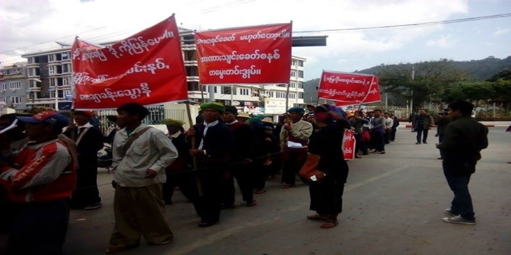 ရွမ္းျပည္နယ္ ေတာင္ႀကီးၿမိဳ႕က ဇန္န၀ါရီ ၈ ရက္ေန႔ ေျမသိမ္းဆႏၵျပပြဲကုိ ဦးေဆာင္တယ္ဆိုၿပီး အမ်ိဳးသားဒီမိုကေရ စီအဖြဲ႔ခ်ဳပ္နဲ႔ ၈၈ မ်ိဳးဆက္ၿငိမ္းခ်မ္းေရး ႏွင့္ပြင့္လင္းလူ႔ အဖြဲ႔ အစည္းက ေဒသဆိုင္ရာေခါင္းေဆာင္ႏွစ္ဦးကို ပအို၀္းအမ်ိဳးသား အဖြဲ႔ခ်ဳပ္(ပီအယ္လ္အို) ပါတီက ကန္႔ကြက္႐ႈတ္ခ်လိုက္ပါတယ္။