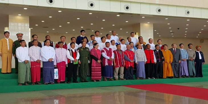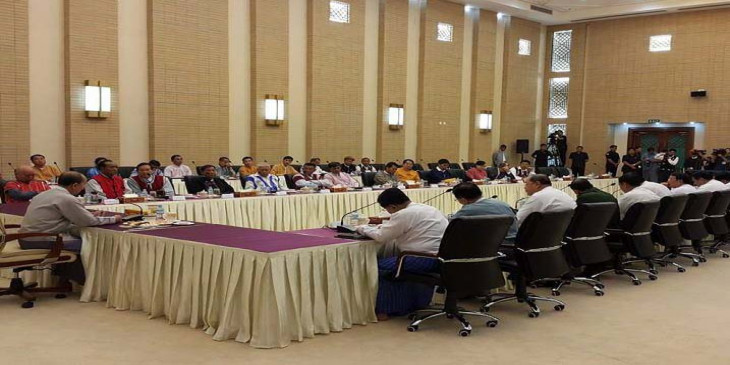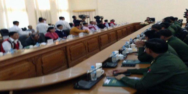 (သမၼတႀကီး၊ ကာခ်ဳပ္ႏွင့္ ေကအန္ယူ ဥကၠ႒ ဗိုလ္ခ်ဳပ္ႀကီးမူတူးေစးဖိုးဦးေဆာင္တဲ့ တိုင္းရင္းသားလက္နက္ကိုင္ ၁၂ ဖြဲ႔ ကိုယ္စားလွယ္ေခါင္းေဆာင္မ်ား ဇန္န၀ါရီလ ၅ ရက္ေန႔က ေတြ႔ဆုံေဆြးေႏြးစဥ္၊ ဓာတ္ပံု - Hmuu Zaw)