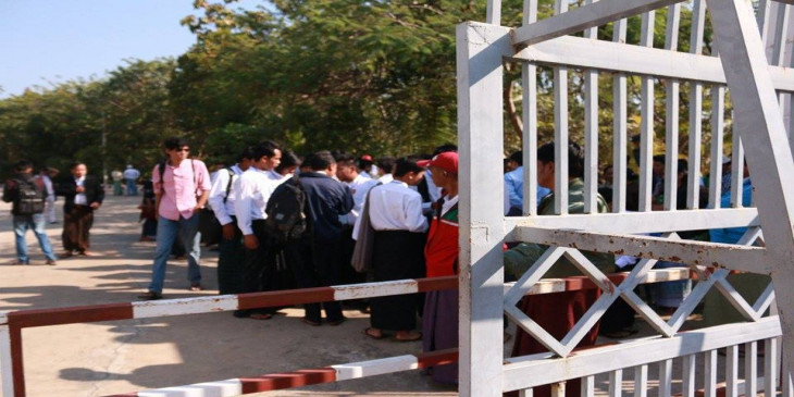 အမ်ိဳးသားပညာေရး ဥပေဒနဲ႔ ပတ္သက္လုုိ႔ ၄ ပြင့္ဆုုိင္ ေဆြးေႏြးပြဲရဲ့ ဒီကေန႔ ေဆြးေႏြးပြဲမွာ ေက်ာင္သားေတြနဲ႔ NNER ဘက္က အစိုးရနည္းတူ ကူညီေပးဖို႔နဲ႔ မွတ္တမ္းတင္ဖို႔ ေခၚေဆာင္လာ သူေတြကို အစုိးရဖက္က ခန္းမထဲ ၀င္ခြင့္မေပးတဲ့အတြက္ အစည္းအေ၀း မစတင္ႏုိင္ေသး ဘဲျဖစ္ေနပါတယ္။