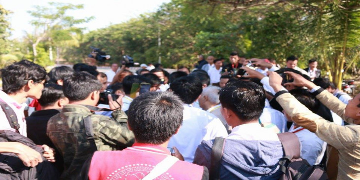 “အထဲမွာဆုိရင္လည္း အစုိးရဖက္က တျခားသူေတြ ၀င္တာမ်ဳိးရွိတဲ့အခါက်ေတာ့ က်မတုိ႔အေနနဲ႔က အားလုံး၀င္ခြင့္ရမွသာ ၀င္လုိ႔အဆင္ေျပမယ္။ ခန္းမ က်ဥ္းရင္ က်မတုိ႔ ၁၅ ေယာက္ထဲ ခန္းမထဲကုိ ၀င္မယ္။ ခန္းမေရွ႕မွာ ပေရာ္ဂ်က္တာတခုထားၿပီး အျခားသူေတြကုိ ခန္းမ ေရွ႕အထိ ၀င္ခြင့္ေပးဖုိ႔ ေလာေလာဆယ္ ေတာင္းဆုိထားတယ္။ အဲဒါကို ညိႇမယ္ဆုိၿပီးေတာ့ အထဲကုိေတာ့ ၀င္သြားတယ္ရွင္။”