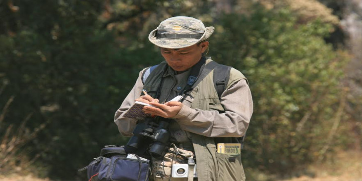 “သြားတဲ့ေနရာေဒသကေတာ့ ျမန္မာျပည္အႏွံ႔မွာပါ။ တႏိုင္ငံလံုးလိုလိုပဲသြားၾကတာ။ လုပ္တာေတာ့ အစိုးရအဖြဲ႔အစည္းအေနနဲ႔ သဘာ၀၀န္းက်င္နဲ႔ သစ္ေတာဦးစီးဌာနလက္ေအာက္မွာ ရွိတဲ့ သဘာ၀၀န္းက်င္နဲ႔ သားငွက္ တိရစၧာန္ ထိန္းသိမ္းေရးဌာန၊ ႏိုင္ငံတကာအဖြဲ႕အစည္းဆိုရင္ Wildlife Conservation Society ရွိတယ္ Fauna & Flora International ရွိတယ္။ ေနာက္ျပည္တြင္းက ငွက္၀ါသနာရွင္အသင္းရွိတယ္၊ ဒါအျပင္ ၀ါသနာအေလ်ာက္လိုက္ေလ့လာတဲ့ လူေတြလည္းရွိတယ္။ အဲလိုလူေတြ လုိက္ၿပီးေတာ့ ေကာက္ထားတဲ့ အခ်က္အလက္ေတြအားလံုးကို ျပန္ၿပီးေပါင္းစုလိုက္တာပါ။ ေပါင္းစုလိုက္ၿပီးေတာ့မွ ဒါကေတာ့ ျမန္မာႏုိင္ငံမွာ အသစ္ျဖစ္တယ္ မွတ္တမ္းမရွိဘူးဆိုၿပီး မွတ္တမ္းတင္လုိက္တာပါ။”