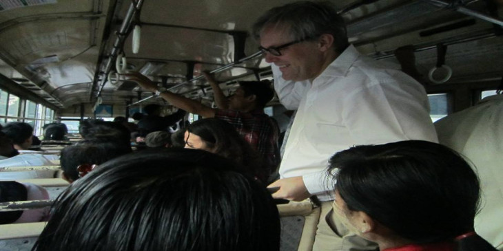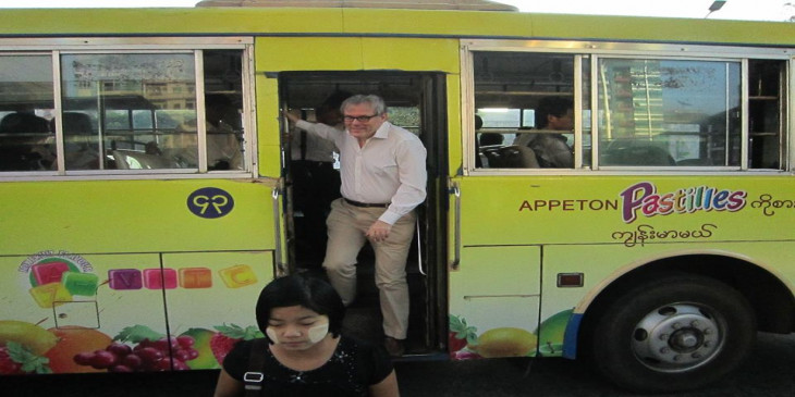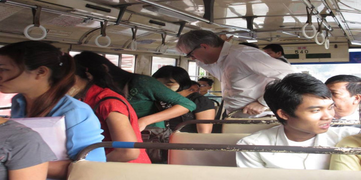 ရန္ကုန္ဘတ္စ္ကား တုိးစီးခဲ့သည့္ ၿဗိတိသွ်သံအမတ္ႀကီး (ဓာတ္ပုံ)