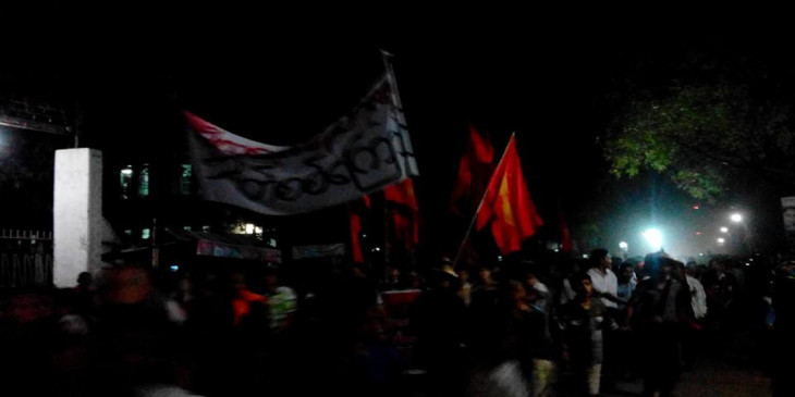 မနက္ျဖန္မနက္ ေအာင္လံၿမိဳ႕အထိ လုံထိန္းရဲေတြကို ျဖတ္ေက်ာ္ရမယ္လို႔ ေက်ာင္းသားေတြကို ၀န္းရံတဲ့ ေတာင္တြင္းႀကီးၿမိဳ႕ခံ ကိုျဖဴ (အမည္ရင္းမဟုတ္) က ေျပာပါတယ္။