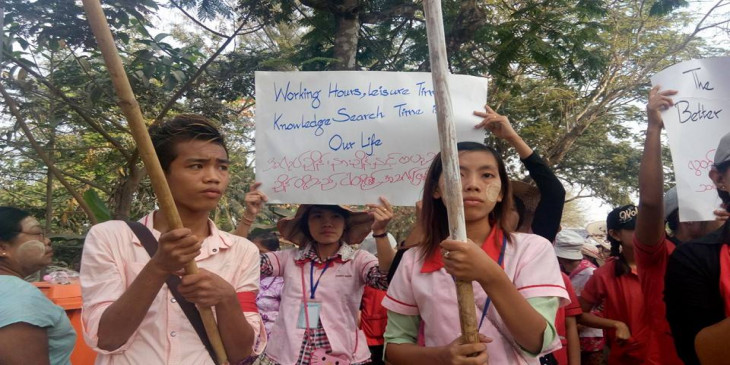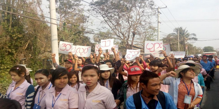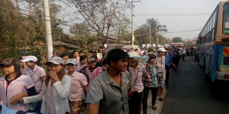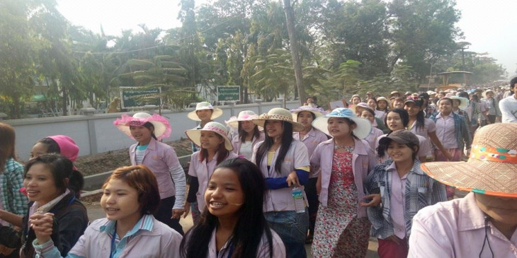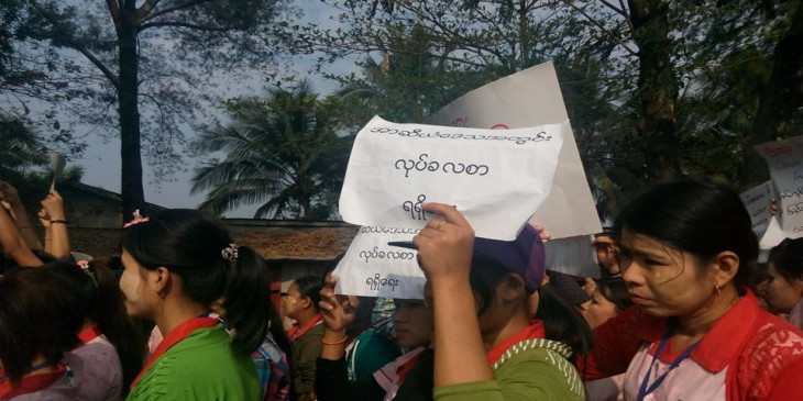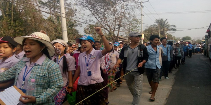 ရန္ကုန္ စက္မႈဇုန္ အထည္ခ်ဳဳပ္လုပ္သားမ်ား လစာတိုးေပးရန္ ဆႏၵျပ
