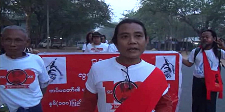 ဗုိလ္ခ်ဳပ္ေအာင္ဆန္း ႏွစ္ ၁၀၀ ျပည့္ကုိ ဂုဏ္ျပဳတဲ့အေနနဲ႔ မေကြးၿမိဳ႕ကလူငယ္ေတြက နတ္ေမာက္ၿမိဳ႕ကုိ လမ္းေလွ်ာက္ခ်ီတက္ေနပါတယ္။