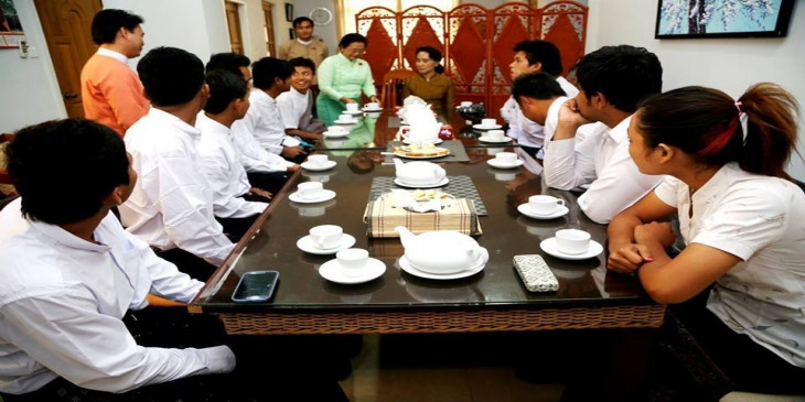 သပိတ္ေမွာက္ေက်ာင္းသားေခါင္းေဆာင္ေတြက ေဒၚေအာင္ဆန္းစုၾကည္ကို သြားေရာက္ေတြ႔ဆုံၿပီး အမ်ိဳးသားပညာေရးဥပေဒကို ျပင္ဆင္သည့္ဥပေဒမူၾကမ္း လႊတ္ေတာ္ထံတင္ျပတဲ့အခါ အေလးအ နက္ထားေဆြးေႏြးေပးဖို႔ ေဆြးေႏြးၾကပါတယ္။