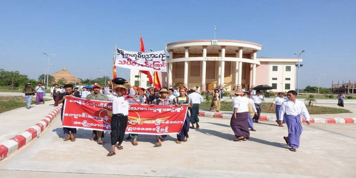 ပဲခူးၿမိဳ႕တြင္း လွည့္လည္ဆႏၵျပေနၾကတဲ့ လူအင္အား ၁၀၀ ၀န္းက်င္လာက္ရွိတဲ့ သပိတ္စစ္ေၾကာင္းဟာ ပဲခူးတကၠသိုလ္ေရွ႕ ေရာက္ရွိခ်ိန္မွာ လူတခ်ဳိ႕က ေက်ာင္း၀င္း တံခါးေတြကိုု ပိတ္လိုုက္ၿပီး ဆိုုင္းဘုုတ္ေတြကိုုင္ေဆာင္တားဆီးမႈနဲ႔ ၾကံဳေတြ႕ခဲ့ရ တာပါ။