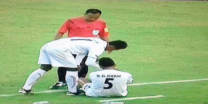 မႏၱေလးၿမိဳ႕ မႏၱလာသီရိ အားကစားကြင္းမွာ ယွဥ္ၿပိဳင္တဲ့ ခ်စ္ၾကည္ေရး ေျခစမ္းပြဲမွာ ျမန္မာ အသင္းအတြက္ အႏုိင္ဂိုးကို သန္းပိုင္က သြင္းယူေပးသြားတာျဖစ္ပါတယ္။