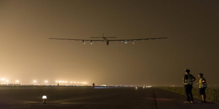 တ႐ုတ္ႏုိင္ငံ နန္က်င္းၿမိဳ႕ကေန အေမရိကန္ျပည္ေထာင္စု ဟာ၀ိုင္ယီကို ထြက္ခြာလာတဲ့ ေနေရာင္ျခည္စြမ္းအင္သံုး ေလယာဥ္ဟာ ပစိဖိတ္သမုဒၵရာတြင္း ရာသီဥတု ဆိုးရြားေနတာေၾကာင့္ ခရီးစဥ္ကို ဖ်က္ၿပီး ဂ်ပန္ႏုိင္ငံမွာ ဆင္းသက္ခဲ့ပါတယ္။ ဒီခရီးစဥ္ဟာ ၆ ရက္ ၾကာမွာျဖစ္ေပမယ့္ ခရီးစဥ္ထဲ ၃၆ နာရီ ပ်ံသန္းၿပီးမွ ခရီးစဥ္ကို ဖ်က္သိမ္းလိုက္တာပါ။