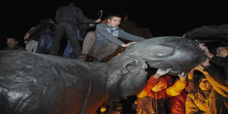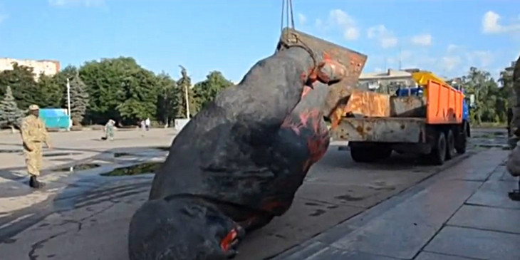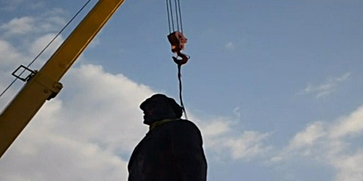 လီနင္႐ုပ္တု ယူကရိန္းအေရွ႕ပုိင္း ၿမိဳ႕လယ္ရင္ျပင္မွ ဖယ္ရွားခံရ