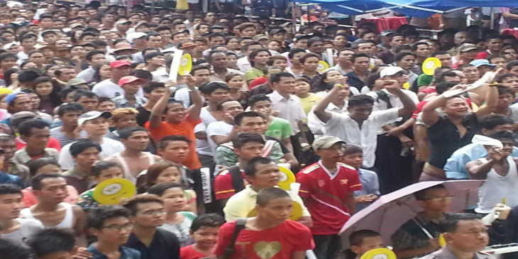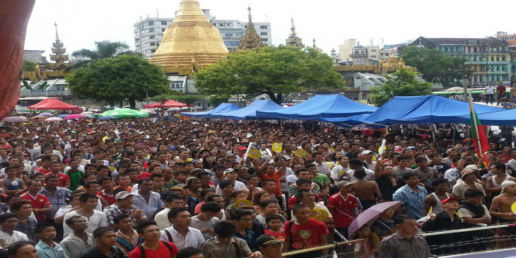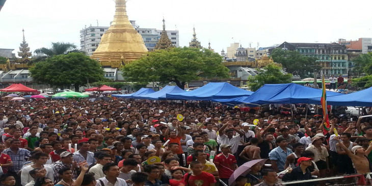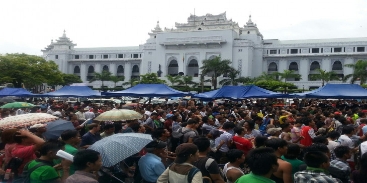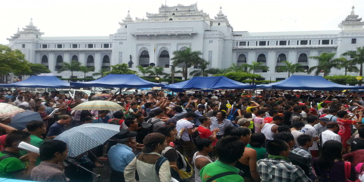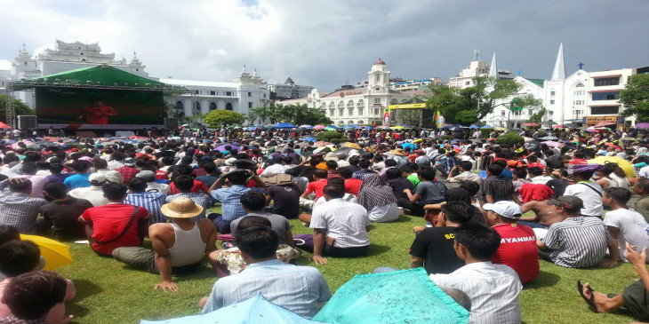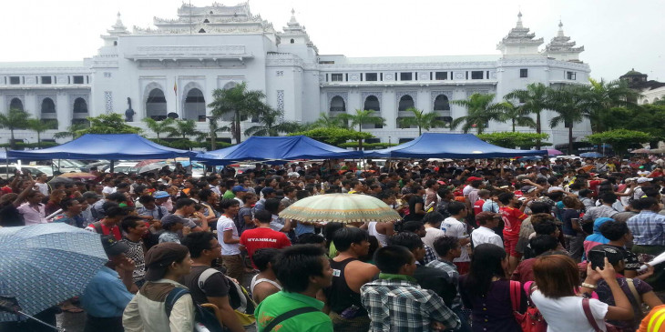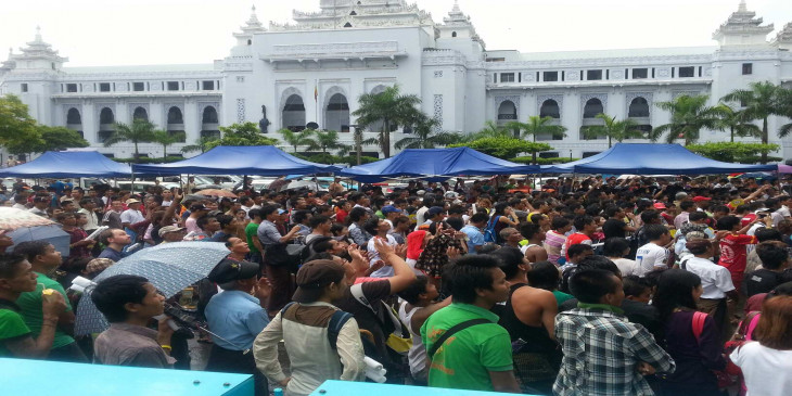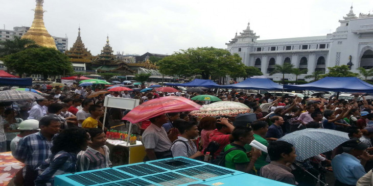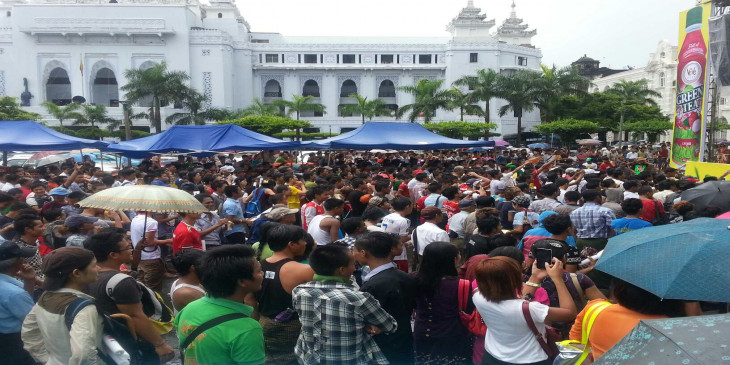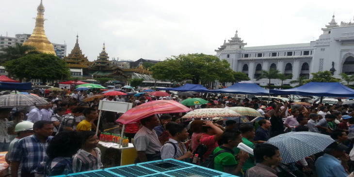 လူပင္လယ္ႀကီးျဖစ္သြားသည့္ ရန္ကုန္ၿမိဳ႕ေတာ္ခန္းမေရွ႕ (ဓာတ္ပုံ)