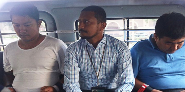 လူသတ္တရားခံအျဖစ္ စြပ္စြဲခံရသူႏွစ္ဦး (၀ဲႏွင့္ယာ) တရား႐ုံးသို႔ ေရာက္လာစဥ္။ (ဓာတ္ပုံ - CNA)