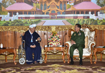 ဇြန္လ ၂၄ ရက္ေန႔က က်င္းပတဲ့ ျမန္မာ့တပ္မေတာ္ (ေလ) ေလယာဥ္ႏွင့္ ရဟတ္ယာဥ္မ်ား တပ္ေတာ္၀င္ အခမ္းအနားမွာ ျမင္ေတြ႔ရတဲ့ ကာကြယ္ေရးဦးစီးခ်ဳပ္ ဗိုလ္ခ်ဳပ္မႉးႀကီး မင္းေအာင္လိႈင္။