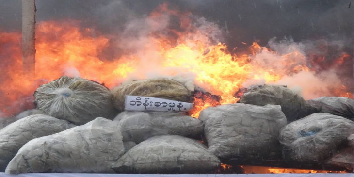 ဖမ္းဆီးရမိ မူးယစ္ေဆး၀ါးမ်ား မီးရႈိ႕ဖ်က္ဆီး (ဓာတ္ပုံ)